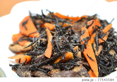摺りごま入りの人参,椎茸と煮込んだ芽ヒジキ・おふくろの味