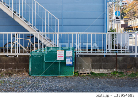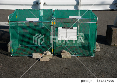 生活ゴミの回収が終わり畳まれた生活ゴミ回収カゴ