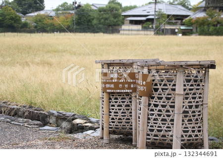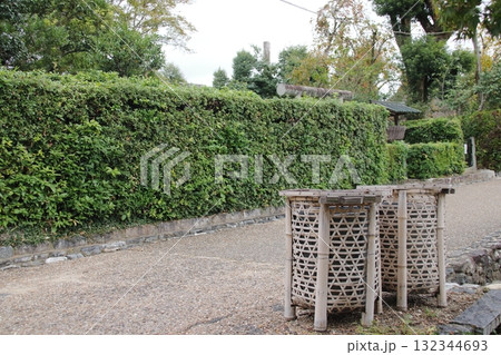 京都・嵯峨野 落柿舎の近くに置かれている竹で編んだゴミ箱