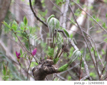 ツツジのつぼみとコシアブラの新芽