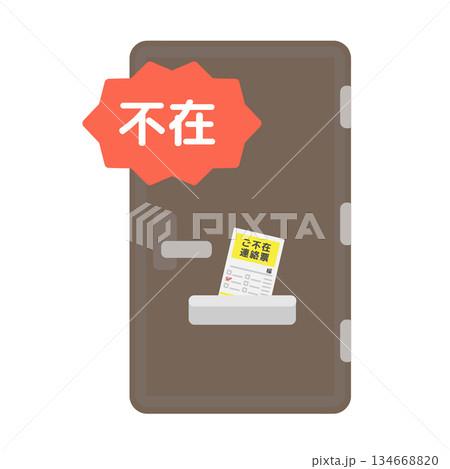 玄関ドアと不在票 不在 イラスト