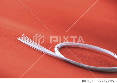 赤いちりめんの和布に赤い水引 日本のおめでたいイメージ