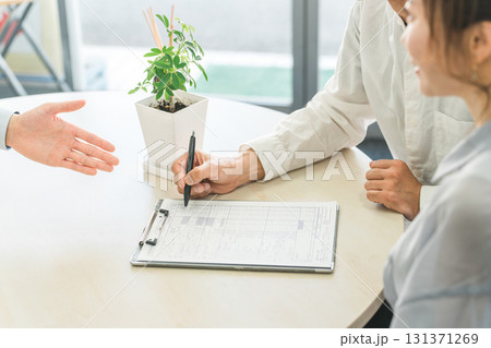 アンケート,問診票,カウンセリングシートに記入する顧客の手元