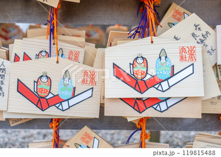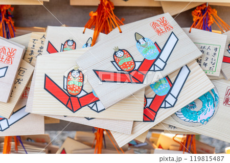 島根県出雲市 縁結び・出雲大社の絵馬のクローズアップ