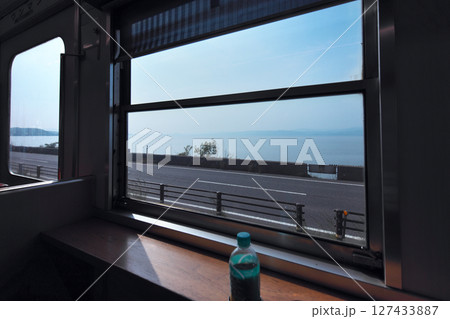 出雲市 一畑電車内から宍道湖の眺め
