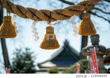 三重県鈴鹿市 かんべの寝釈迦まつり開催中の龍光寺にある神社のしめ縄