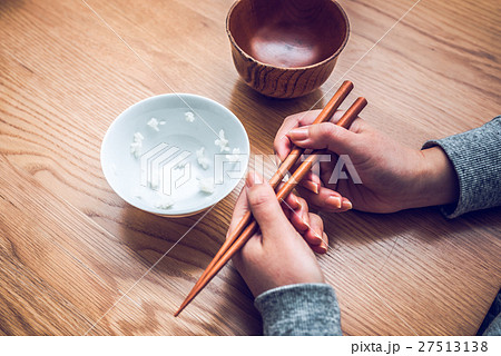 一粒のご飯をつまむイメージ