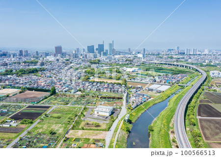 空撮「埼玉県」春の見沼田んぼとさいたま新都心