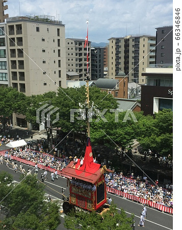 電柱を避けて進む祇園祭 山鉾巡行の函谷鉾