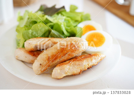ヘルシーな、茹で鶏のささみ(ササミ/笹身)肉のサラダ。