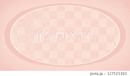 柔らかなピンクのチェック柄背景にエレガントな楕円形のフレーム