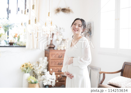 結婚式のマタニティフォトのイメージ カメラ目線 前撮りや幸せいっぱいの妊婦さんのイメージ