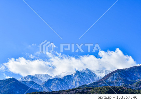 千畳敷カールから見る宝剣岳と登山道 青い空