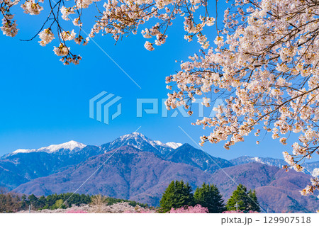 北杜市眞原から満開のしだれ桜 桜とスモモga南アルプス甲斐駒ヶ岳