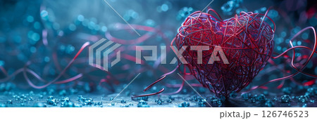 Abstract Wire Mesh Heart with Soft Pink and Blue Lighting for Romantic Themes