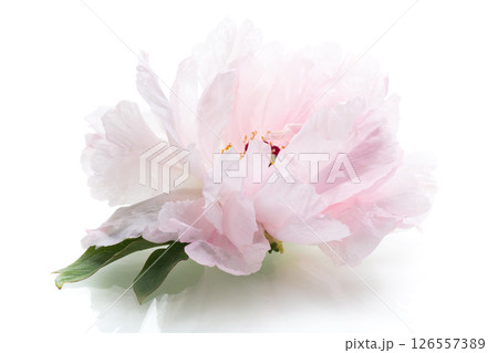 Pink peony close-up on a white background