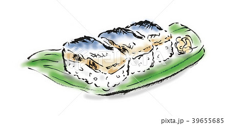 筆文字 さば寿司 鯖 食べ物 イラスト