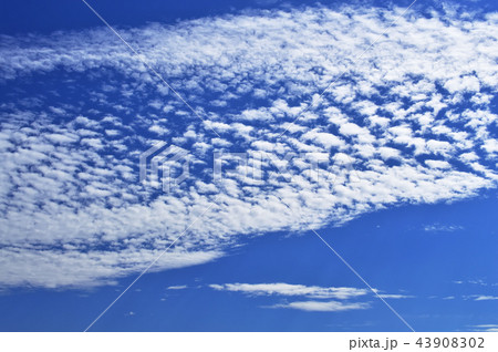 秋の空 白い雲と青い空 背景素材 コピースペース 文字スペース 筋雲 積雲 すじ雲 巻雲 巻積雲
