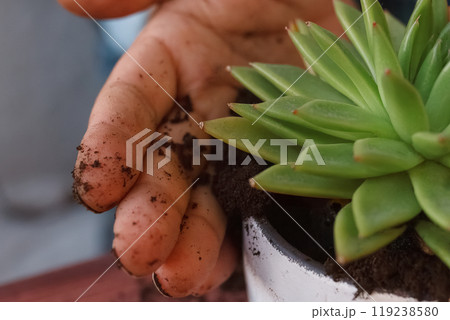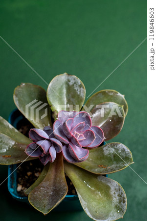 Pink Succulent houseplant Pachyveria Draco in white pot. Flower bouquet arrangement