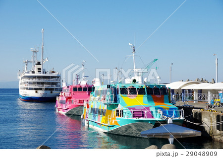 伊豆大島 岡田港に停泊中のジェットフォイル
