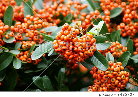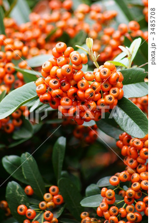 Orange berries of Pyracantha coccinea (firethorn) from Rosaceae family in autumn garden