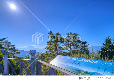 秋の山梨県甲府市昇仙峡のロープウェイ山頂駅にある浮富士広場から南側の眺望
