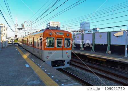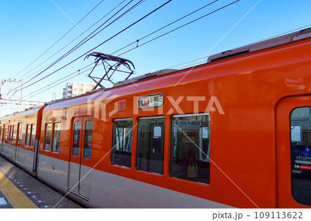 神戸市垂水区の山陽電鉄、山陽垂水駅のホームに止まる特急