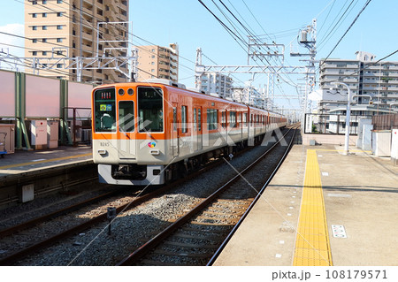 神戸市垂水区の山陽電鉄、山陽垂水駅のホームに近づく普通列車