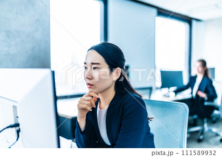 ビジネスウーマン ビジネススーツ 女性 白バック