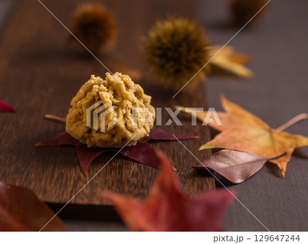 秋の和菓子、栗きんとん (俯瞰撮影)