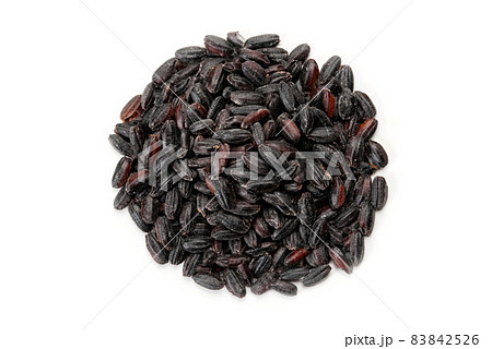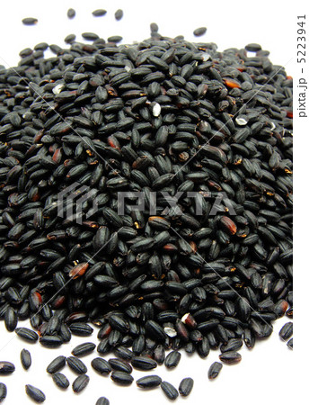 健康食品の背景素材・アントシアニン系の紫黒色素の健康効果の多い黒米・白バック横位置