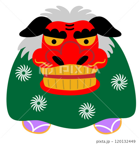 獅子舞に噛まれる笑顔の男の子 正月素材 手描き
