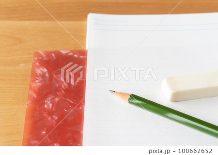 セルロイド製の下敷きとノート、ランドセル 校舎 教育