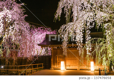 ライトアップされた美しい夜桜 角館武家屋敷 秋田県