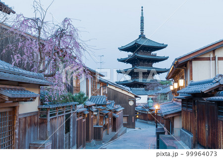 京都法観寺_桜咲く安寧坂と八坂の塔の絶景