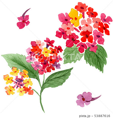 Red lantana floral botanical flowers. Watercolor background illustration set. Isolated lantana