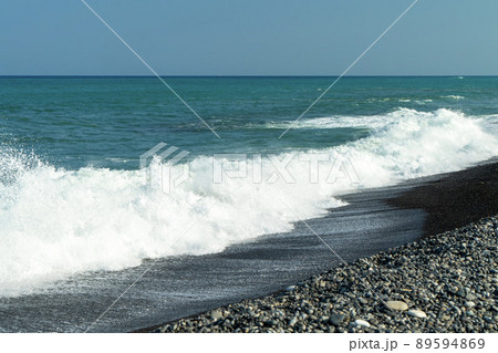 鎌倉 凪いだ七里ヶ浜の海の風景 横位置