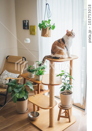 室内飼いの可愛い三毛猫