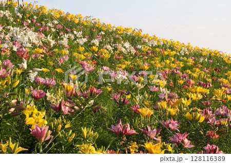 金色百合花海與日出|朝日の中の黄色いユリ畑 水彩插畫