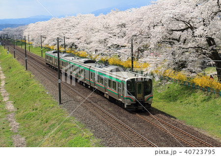 桜並木とE721系