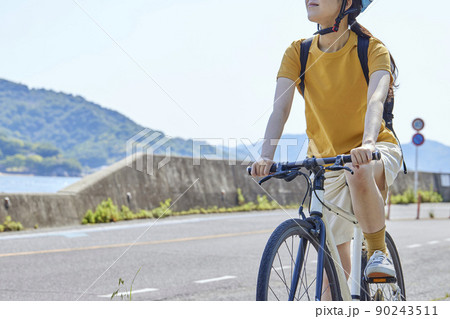 しまなみ海道にてサイクリングを楽しむ日本人女性