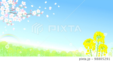 桜と菜の花 桜吹雪 虹 シャボン玉 青空