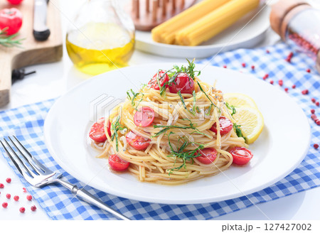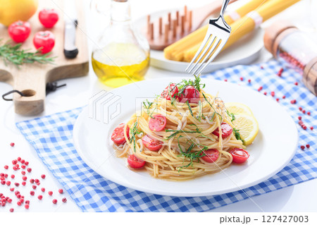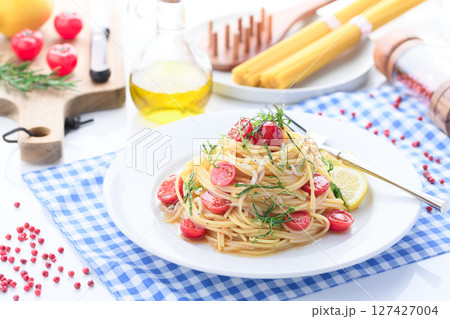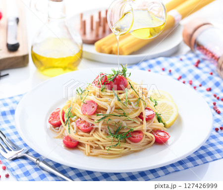しらすとトマトの冷製パスタの画像素材(写真・イラスト) 1ページ目