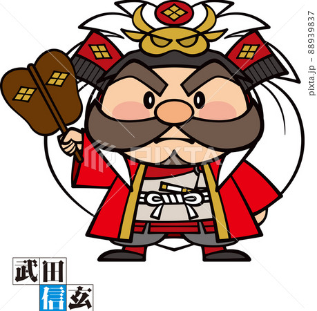 仁王立ちになって待ち構える武田信玄【2頭身・家紋・ベクター】