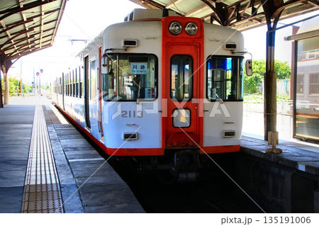松江しんじ湖温泉駅に停車している一畑電車北松江線の車両(島根県松江市)