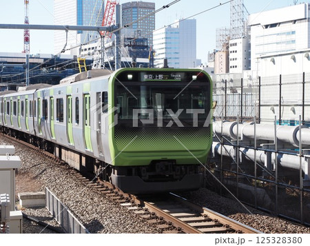駅に到着した山手線電車