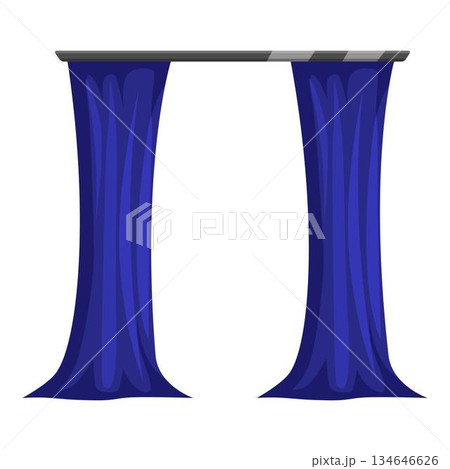 Blue curtains hanging on metal rod creating elegant atmosphere
