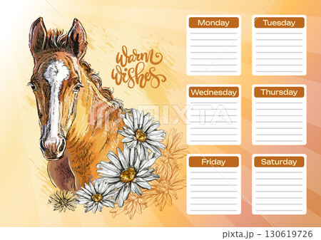 School schedule with fox. Kids funny timetable template, autumn weekly planner design, cute redhead fluffy animals, childish poster, cartoon mascot, empty textbox garish vector concept