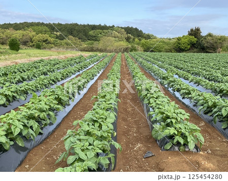 畑で栽培されているジャガイモの写真