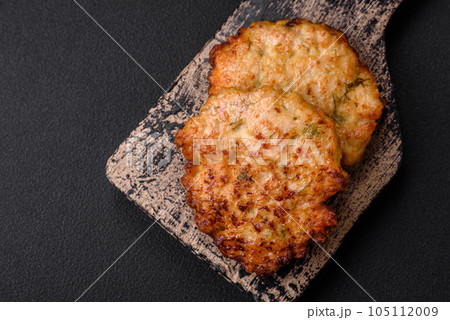 Delicious fresh fried minced chicken meat cutlets with salt, spices and herbs